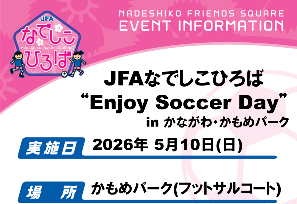 5月10日(日)JFAなでしこひろば“Enjoy Soccer Day” in かながわ・かもめパーク開催のお知らせ
