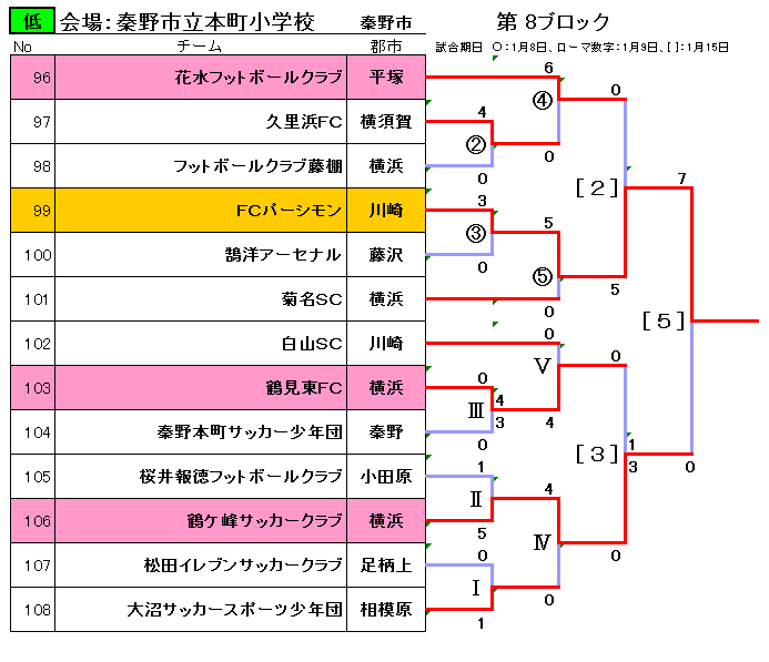 第38回神奈川県少年サッカー選手権大会組合せ