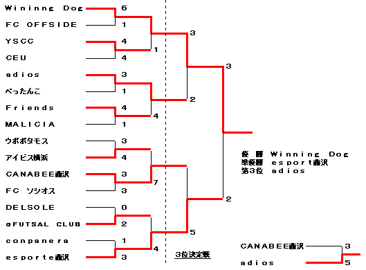 | 同点の場合前後半5分のVゴール方式さらに同点の場合PK3本 | ||