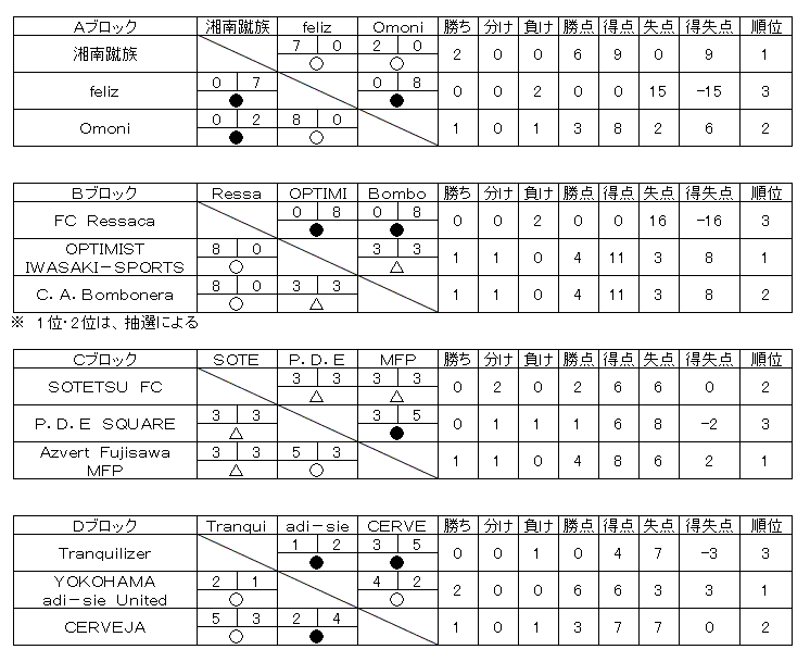 | 湘南蹴族 | 1 | − | 0 | OPTIMIST IWASAKI−SPORTS | ||