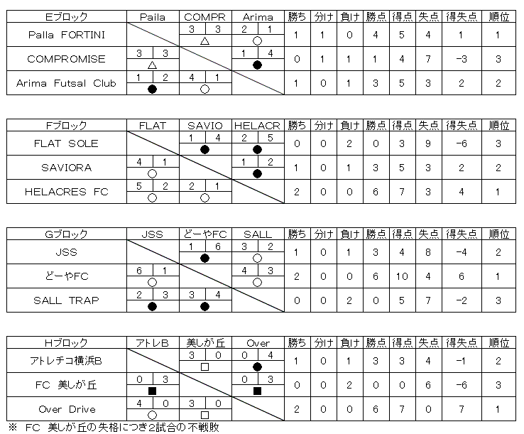 | FC 美しが丘 | 0 | 不戦 | 3 | Over Drive |