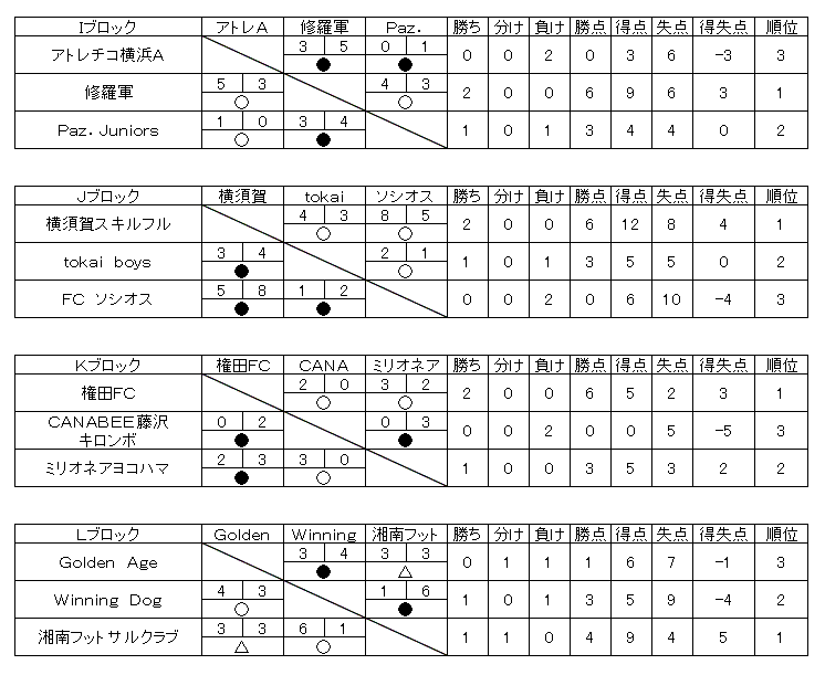 | 権田FC | 2 | − | 0 | CANABEE藤沢キロンボ |