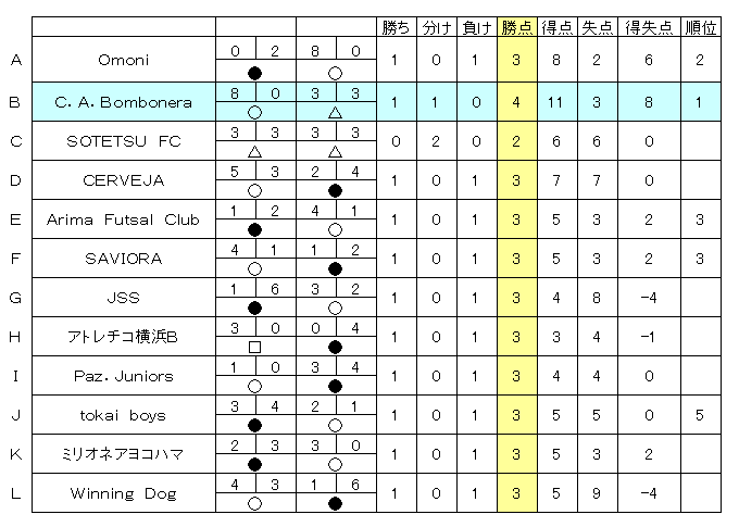 | OPTIMIST IWASAKI−SPORTS | 3 | 分 | 3 | C.A.Bombonera |