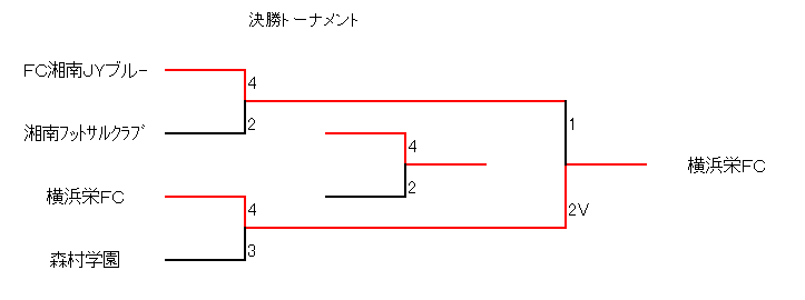 | 準決勝 | FC湘南JYブルー | 4 | − | 2 | 湘南フットサルクラブ | |||||