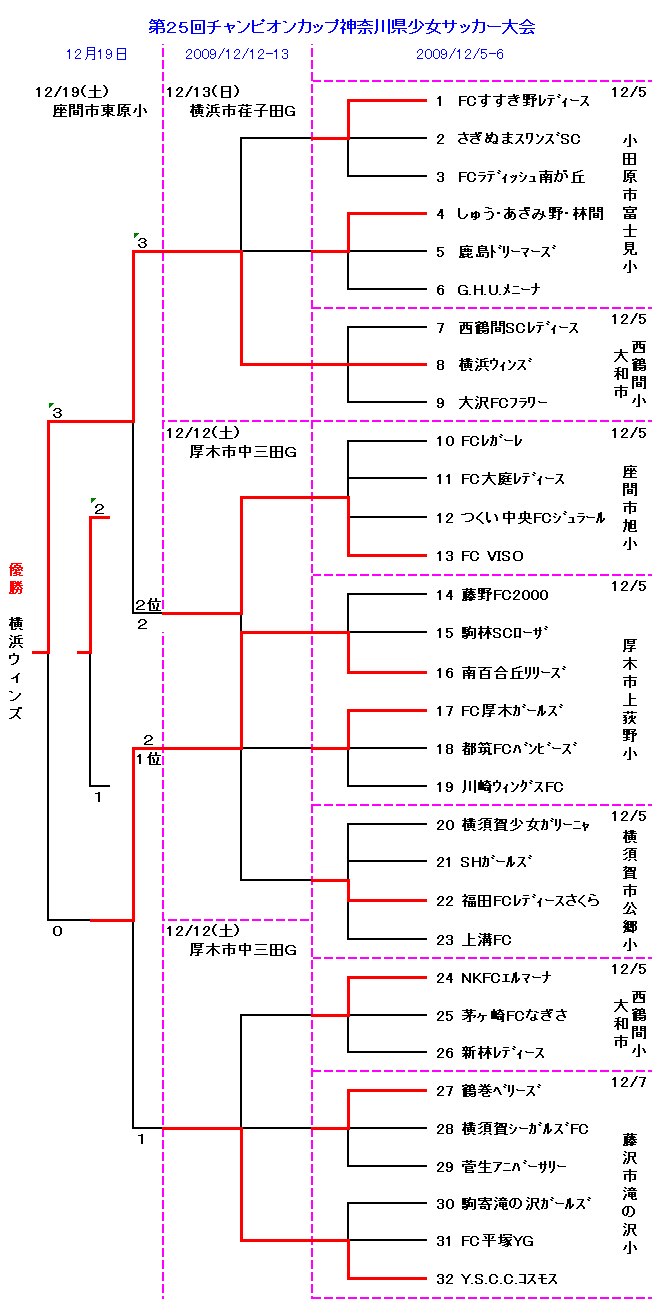14:00 準決勝1 横浜ウィンズ 3−2 FC Viso 14:00 準決勝2 南百合丘リリーズ 2−1 YSCCコスモス 15:20 3位決定戦 FC Viso 2−1 YSCCコスモス 15:20 決勝戦 横浜ウィンズ 3−0 南百合丘リリーズ |
