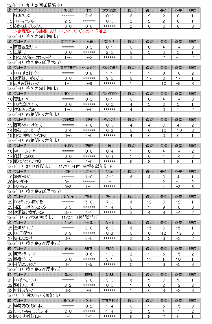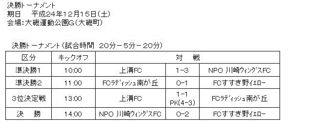 予選リーグへ 2次リーグへ 組合せへ 大会成績へ 日程と注意事項 大磯運動公園多目的広場 |