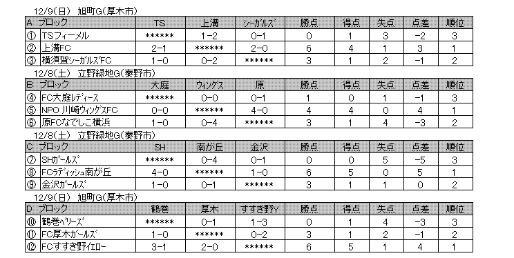 、9日(日) 予選リーグへ 決勝 トーナメントへ 組合せへ 大会成績へ 日程と注意事項 旭公園G 立野緑地G |