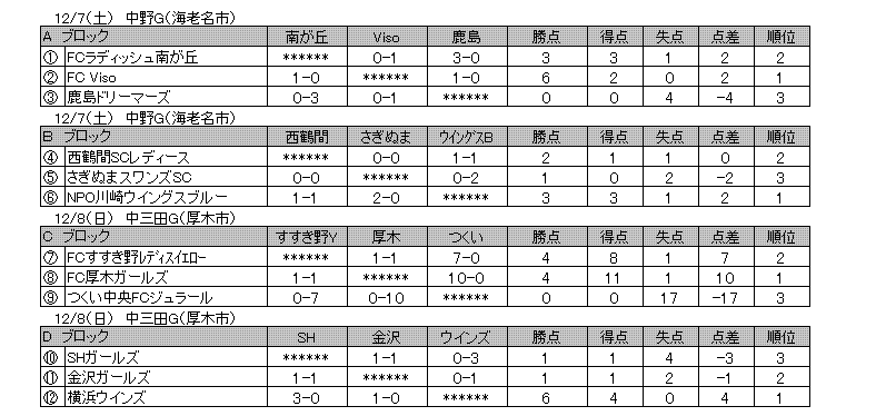 12月1日(日) 2次リーグへ 決勝 トーナメントへ 組合せへ 大会成績へ |