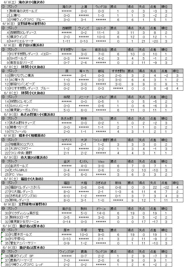 ★予選リーグ 6月8日(土)、9日(日) 2次リーグへ 決勝 リーグへ 組合せへ 大会成績へ 印刷用PDF | |||||||||||||||||||||||||