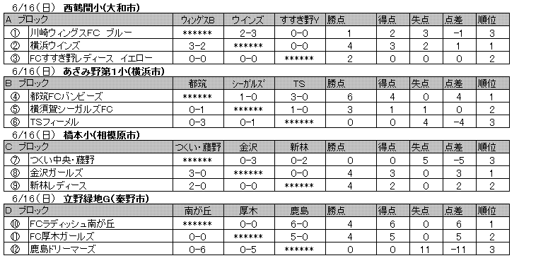 ★2次リーグ: 6月15日(土)、16日(日) 予選リーグへ 決勝 リーグへ 組合せへ 大会成績へ | |||||||||||||||||||||||||