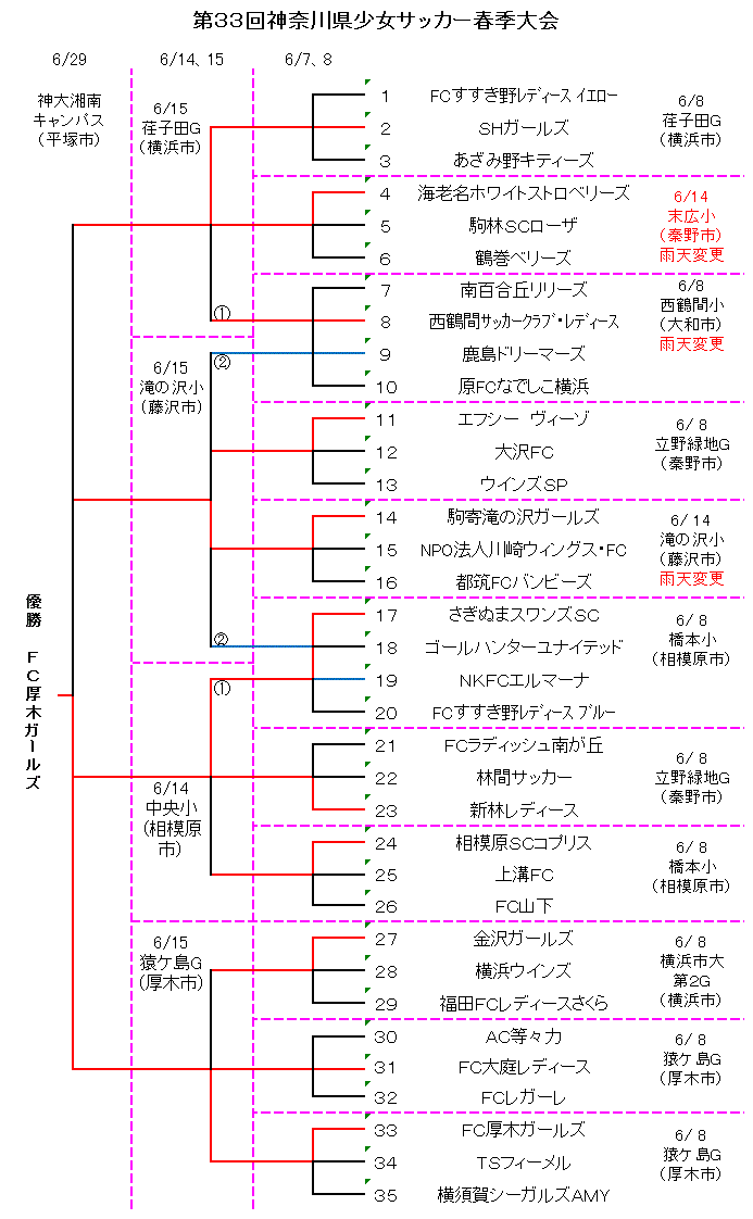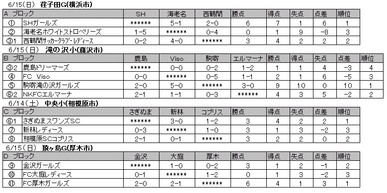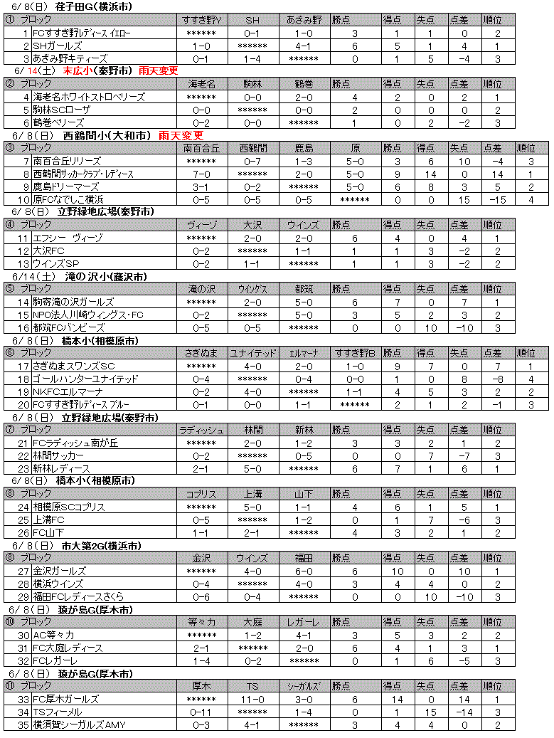 ★予選リーグ 6月7日(土)、8日(日) 2次リーグへ 決勝 リーグへ 組合せへ 大会成績へ | |||||||||||||||||||||||||||