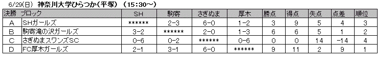 ★決勝リーグ: 6月29日(日) 予選リーグへ 2次リーグへ 組合せへ 大会成績へ |