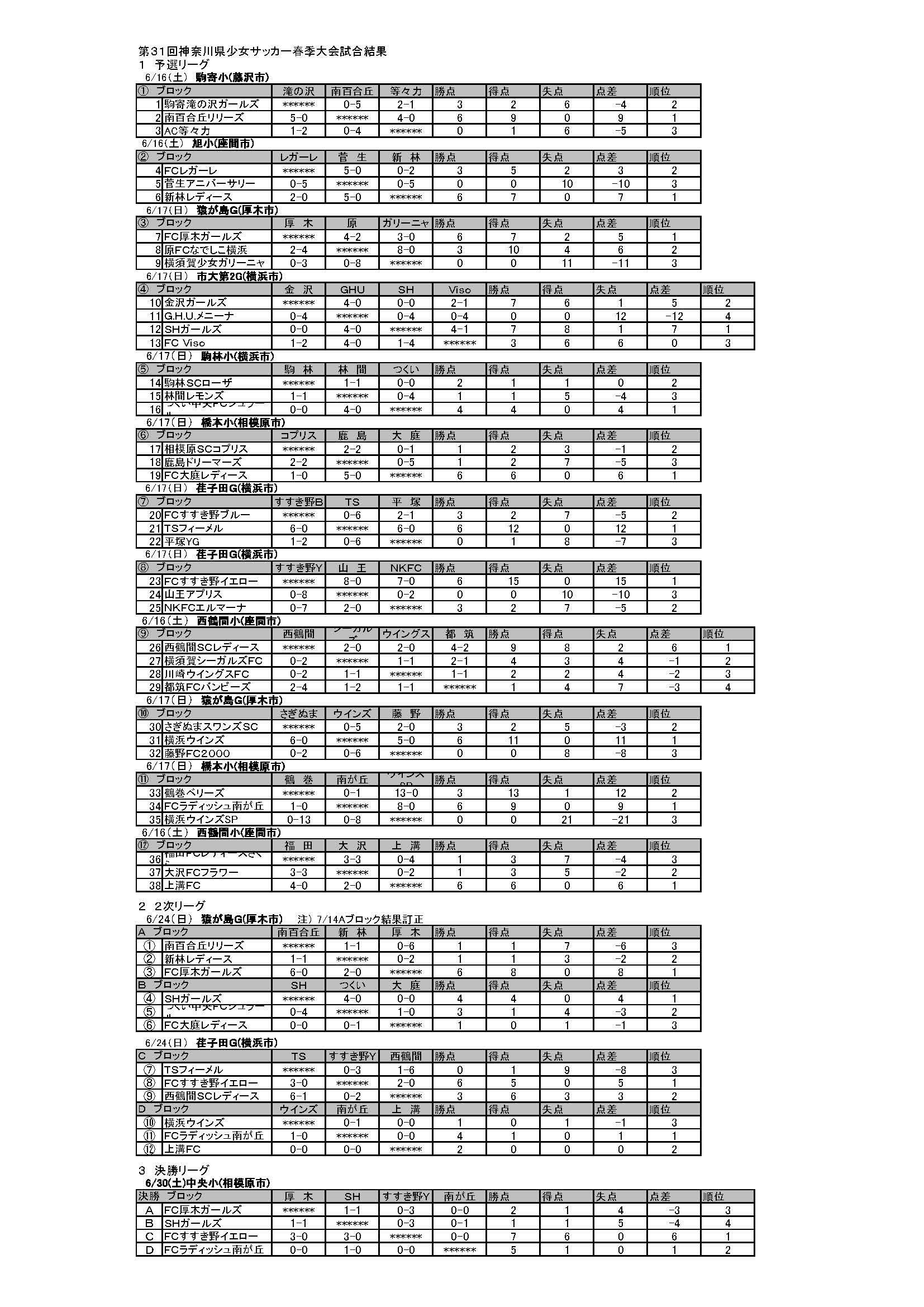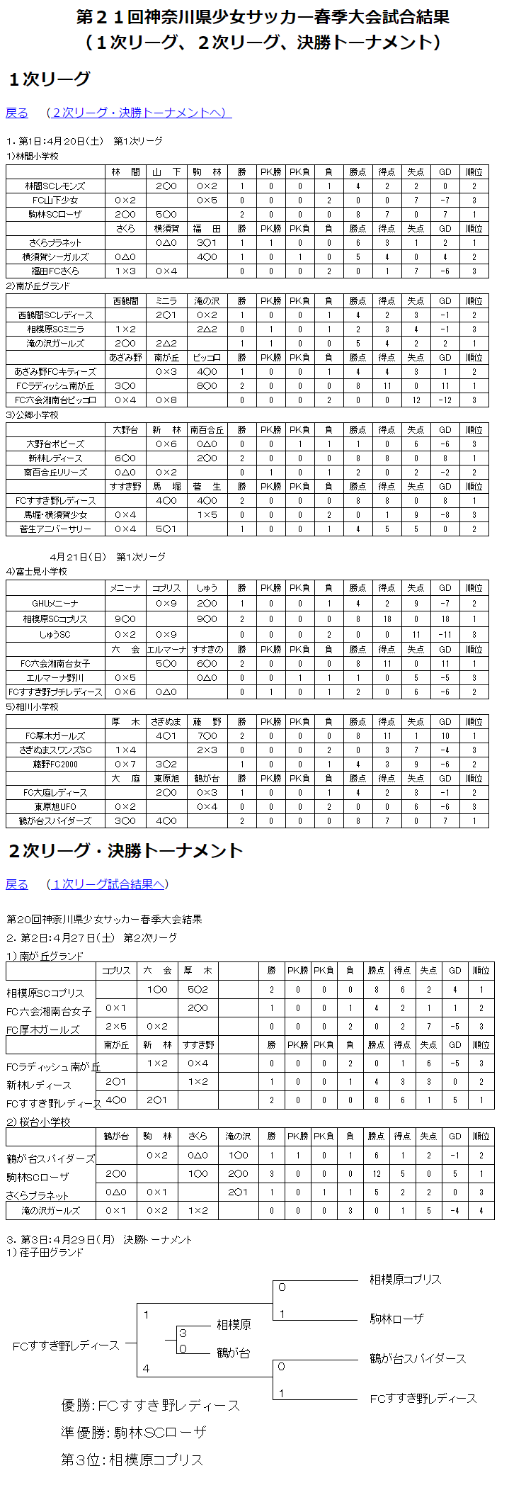 | 26 | 2006 | 31 | 横須賀少女サッカー団 | 滝の沢ガールズ | 相模原SCコプリス | 西鶴間SCレディース |