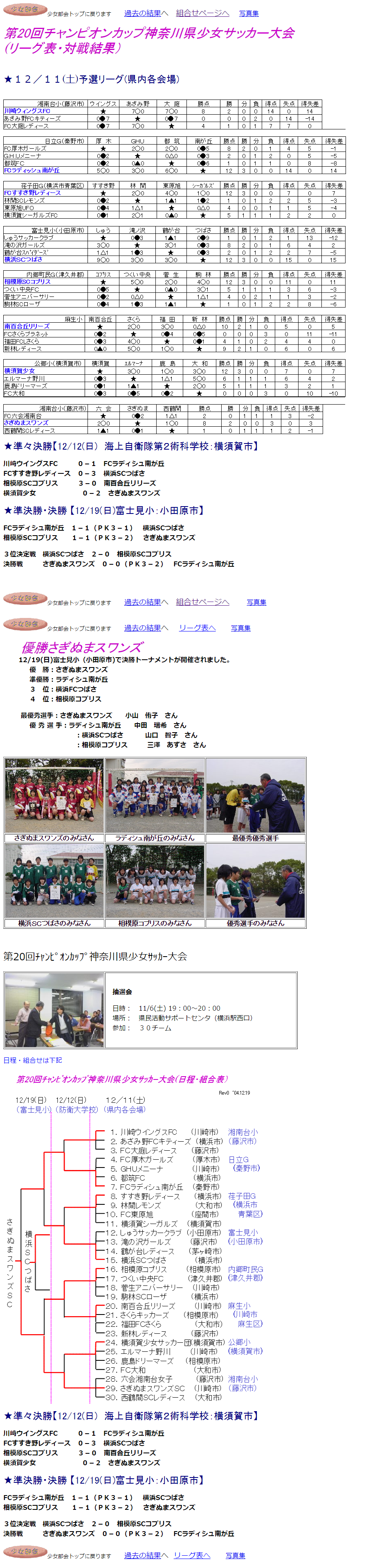 | 20 | 2004 | 30 | さぎぬまスワンズSC | FCラディッシュ南が丘 | 横浜SCつばさ | 相模原SCコプリス |