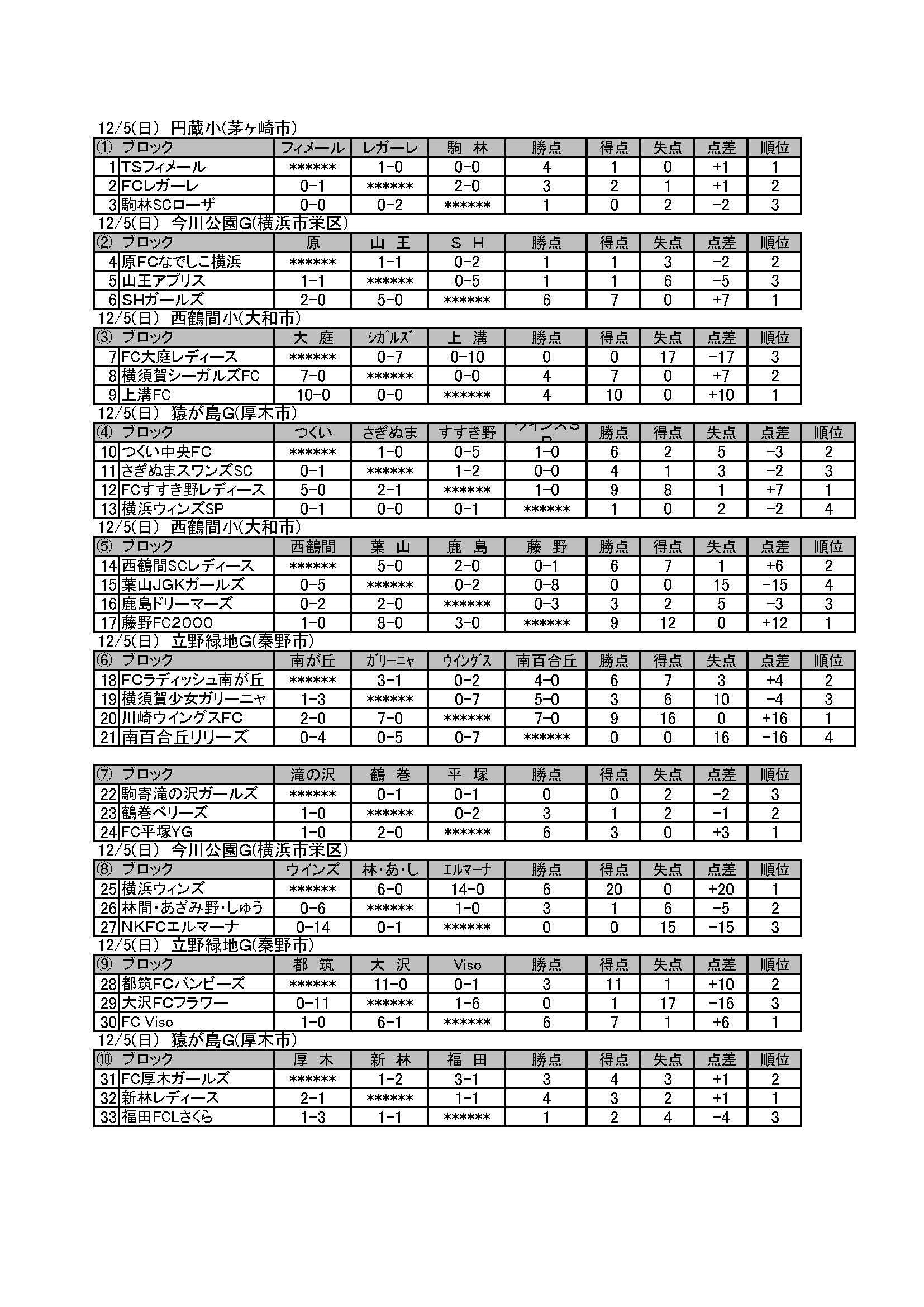 相模原SCコプリス | 馬堀FC・横須賀少女 | 駒林SCローザ |