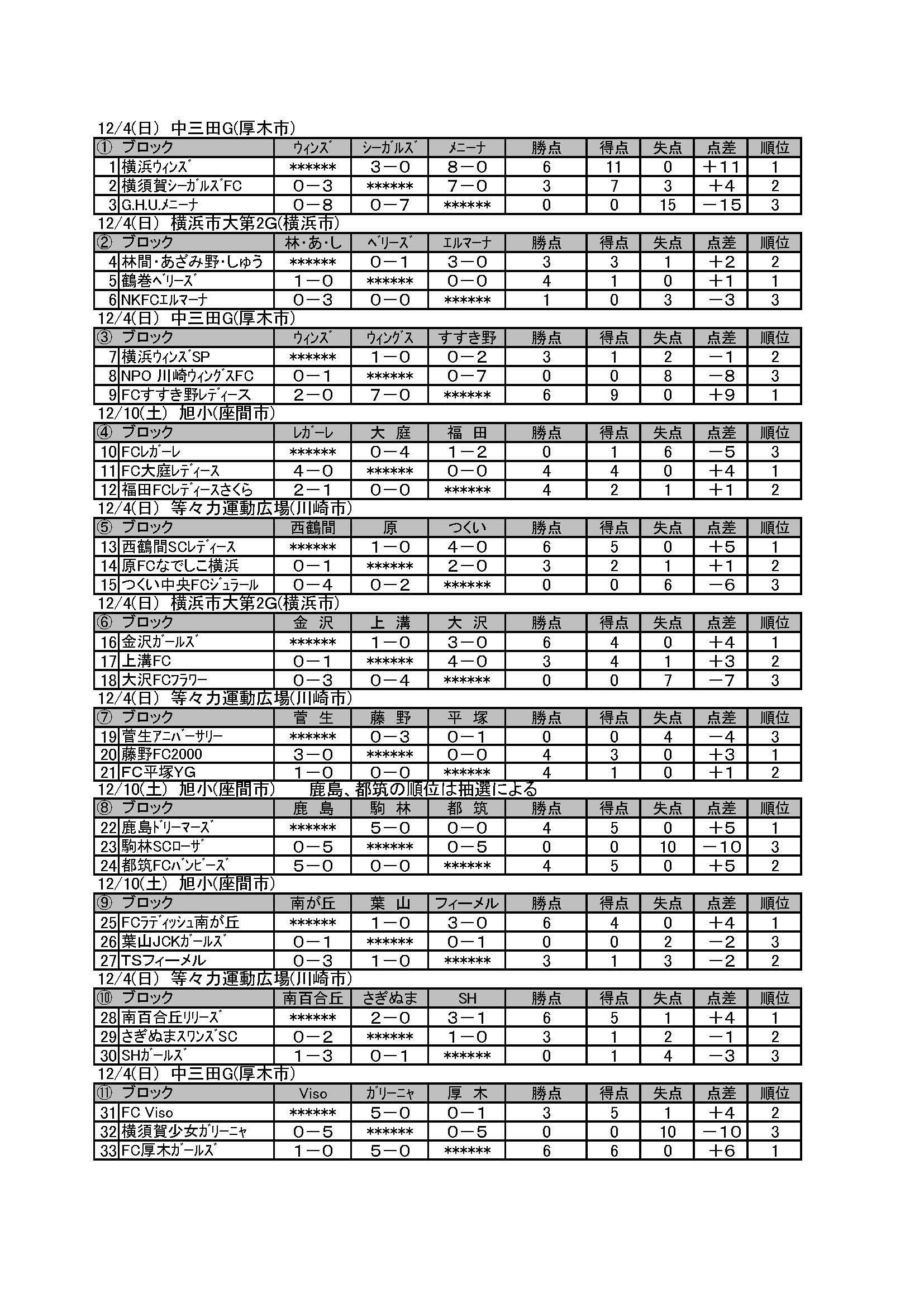 FCすすき野レディース | 横浜ウインズ | FC厚木ガールズ |