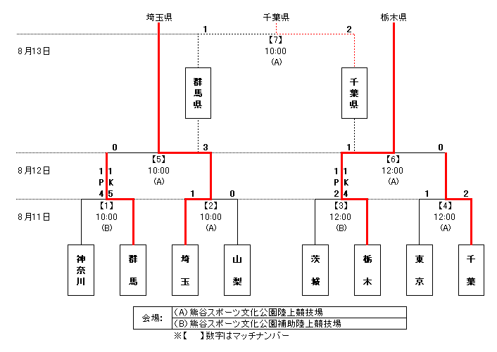 | 埼玉県 | 2 | 前半 | 0 | 群馬県 |